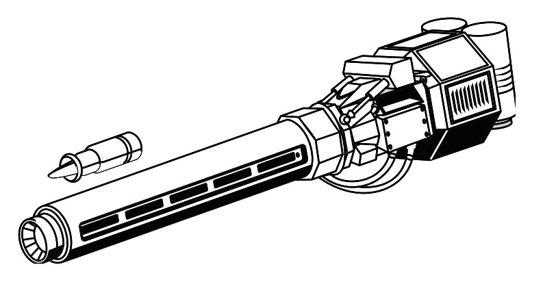 An improvement on the common autocannon intended to expand the weapon’s role into anti-vehicle and anti-infantry work, the LB-X makes use of light, heat-dissipating alloys to reduce its weight and thermal buildup. These materials, coupled with a smooth-bore, multi-munition feed mechanism, make the LB more expensive than standard autocannons. However, the slight range increase and the ability to switch between standard-style bursts and explosive cluster munitions—both specially developed for this weapon system—more than mitigate this higher cost.
