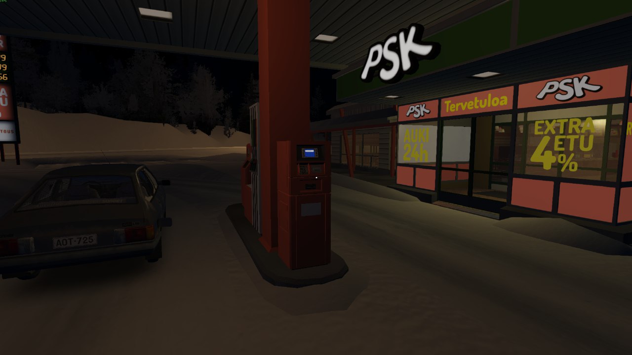 Cold: When you first start the game, you are inside your house. Before going outside, find the warm clothes on the floor and put them on to avoid freezing. You can take them off indoors by looking at the floor and pressing F. Both your new house and the old house from My Summer Car have space heaters. Food: Food is no longer sold at Teimo’s. You must buy it at the new gas station. Teimo’s shop is now just a bar, where you can purchase coffee, beer, rations, and vodka.